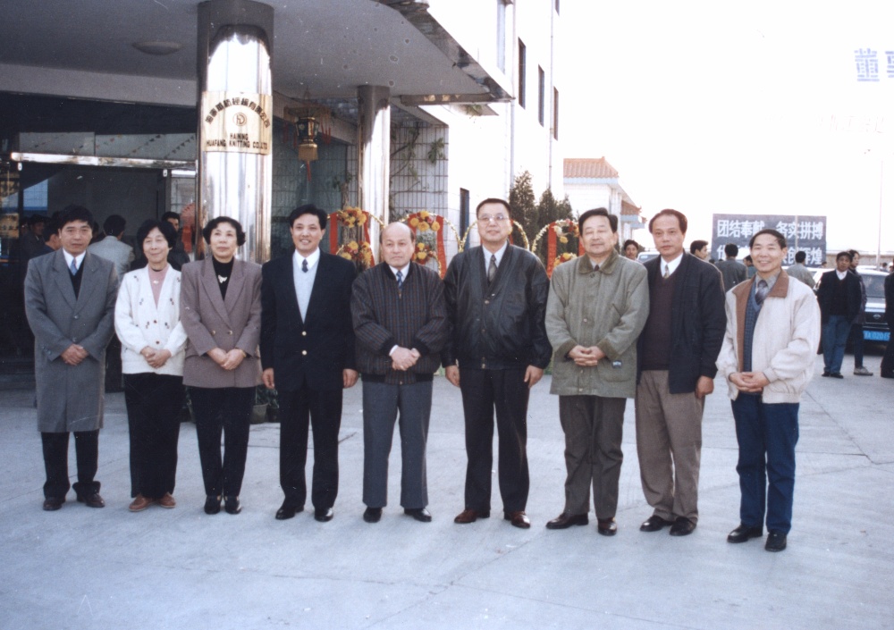 時任全國政協常委、原浙江省省長沈祖倫(左五)等領導在浙江宏達經編實業公司