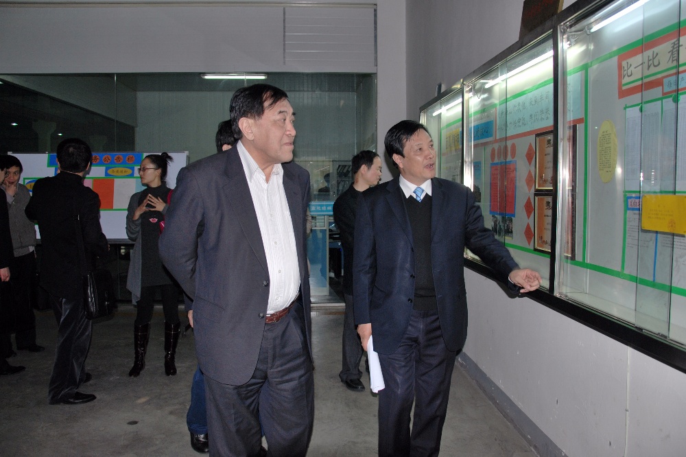 原國家人事部副部長、時(shí)任浙江省省長萬學(xué)遠(yuǎn)(左二)等領(lǐng)導(dǎo)在浙江宏達(dá)經(jīng)編股份有限公司指導(dǎo)工作