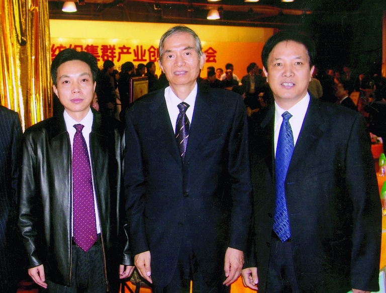 時任中國紡織工業協會副會長許坤元與時任中共海寧市委書記馮水華、董事長沈國甫在海寧