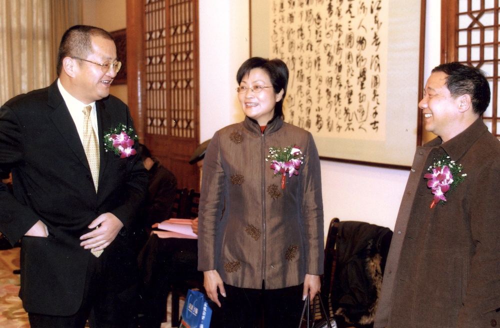 海寧市人大常委會主任(時任中共海寧市常務副市長)徐輝陪同前往考察的香港實業家查濟民先生在宏達經編實業公司