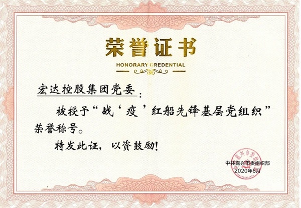 近日,中共宏達控股集團黨委被中共嘉興市委組織部評為“戰(zhàn)‘疫’紅船先鋒基層黨組織”。