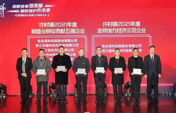 2022年2月12日下午,許村鎮(zhèn)召開“創(chuàng)新變革強(qiáng)發(fā)展 融杭接滬向未來(lái)”2022年度工作動(dòng)員大會(huì),“宏達(dá)高科”在會(huì)上獲評(píng)“2021年度制造業(yè)稅收貢獻(xiàn)五強(qiáng)”和“2021年度支持地方經(jīng)濟(jì)示范企業(yè)”榮譽(yù)稱號(hào)。