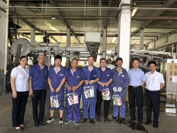 他們先后來到公司溫度最高的兩個車間定型和染色車間,向在高溫天氣中堅守崗位的一線員工表示親切的慰問和感謝并送上慰問品。在生產現場,許總經理囑咐大家高溫生產不忘安全,做到勞逸結合;也要求各部門切實做好防暑降溫工作,保障員工健康安全。