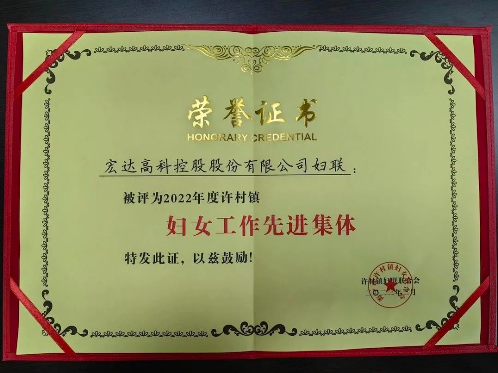 3月6日,許村鎮(zhèn)召開紀(jì)念“三八”國際婦女節(jié)113周年表彰大會。會上表彰了2022年度婦女工作先進(jìn)集體和先進(jìn)個人、2022年度優(yōu)秀村(社區(qū))婦女組長、2022年度許村鎮(zhèn)“十佳最美文明家庭”、2022年度最美“潮城木蘭”和2022年度許村鎮(zhèn)“優(yōu)美庭院”示范戶。宏達(dá)高科婦聯(lián)被評為鎮(zhèn)婦女工作先進(jìn)集體,公司婦聯(lián)主任胡郎秋代表公司上臺領(lǐng)獎。