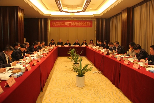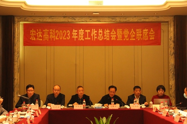 2024年1月16日,宏達高科“錢江君廷”酒店召開2023年度工作總結暨黨企聯席會,總結回顧2023年度各項工作情況,研究部署明年工作任務。黨委書記、董事長沈國甫、黨委副書記、總經理許建舟、黨委委員、副總經理顧偉鋒、孫云浩及公司管委會成員、中層干部共計33人參加會議。會議由黨委委員、辦公室主任胡朗秋主持。