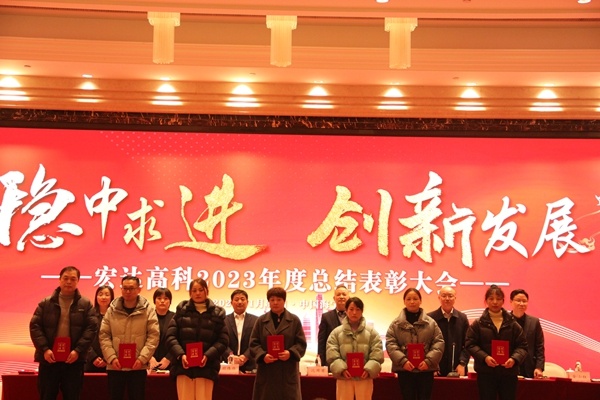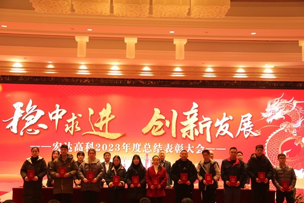 此次會議以“穩中求進 創新發展”為主題。會議表彰了2023年度優秀新人、優秀基層員工、優秀基層管理者、優秀中層管理者,以及2023年度生產實操技能考核優秀人員;獲表彰的員工代表分別發表了獲獎感言;營銷中心經理陳永達就2024年銷售工作作表態發言;副總經理金小紅就分管的技術、工藝工作作表態發言;副總經理孫云浩就分管的生產工作作表態發言。