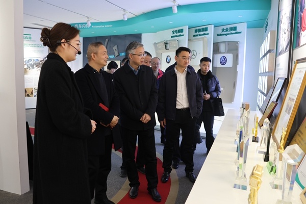 在宏達高科,徐勇一行參觀了經(jīng)編車間及公司展廳,對公司的產(chǎn)品、發(fā)展歷程、產(chǎn)業(yè)布局有了深入的了解。