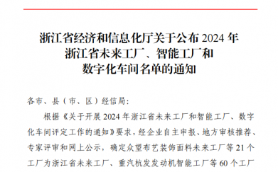 1月18日,浙江省經(jīng)濟(jì)和信息化廳對(duì)2024年浙江省未來(lái)工廠、智能工廠和數(shù)..